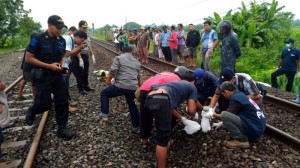 Seorang pria tewas tertabrak kereta di perlintasan tanpa palang pintu yang ada di Nyamplung Balecatur Gamping Sleman, Rabu (3/2/2016) pagi.