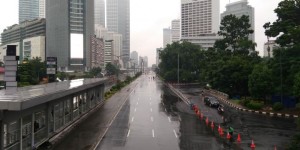 19. Genangan di Depan Esa Unggul tol Tomang dari arah Tangerang sehingga 10 cm.