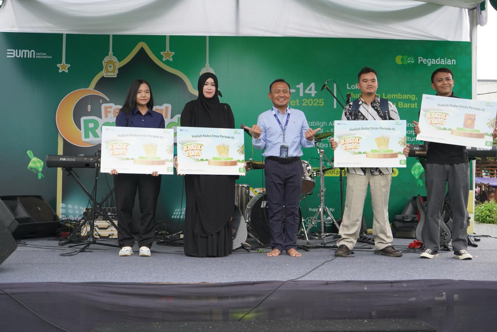 Lembang (BRS) – PT Pegadaian Kanwil X Jawa Barat sukses menggelar penyerahan hadiah Undian Badai Emas Periode III di Alun-alun Lembang, Jumat (14/3/2025). Acara tersebut sekaligus menjadi puncak dari rangkaian Festival Ramadhan Pegadaian Area Bandung I yang telah berlangsung sejak 1 Maret 2025.